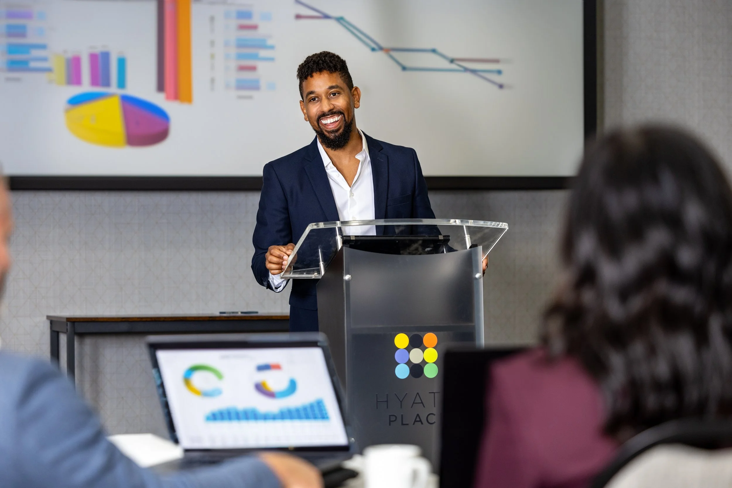 From board meetings to multi-day conferences, our state-of-the-art meeting rooms and full audiovisual support keep your team focused and productive. On-site catering and room blocks make logistics effortless.